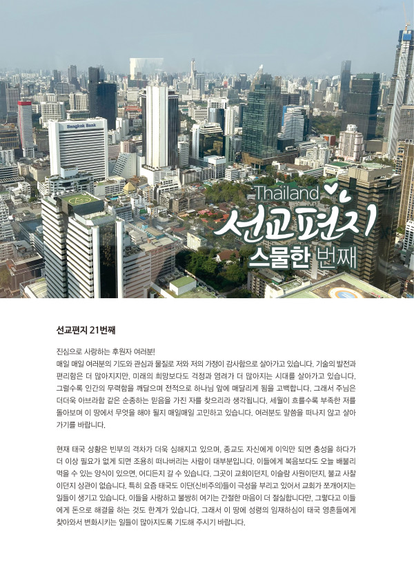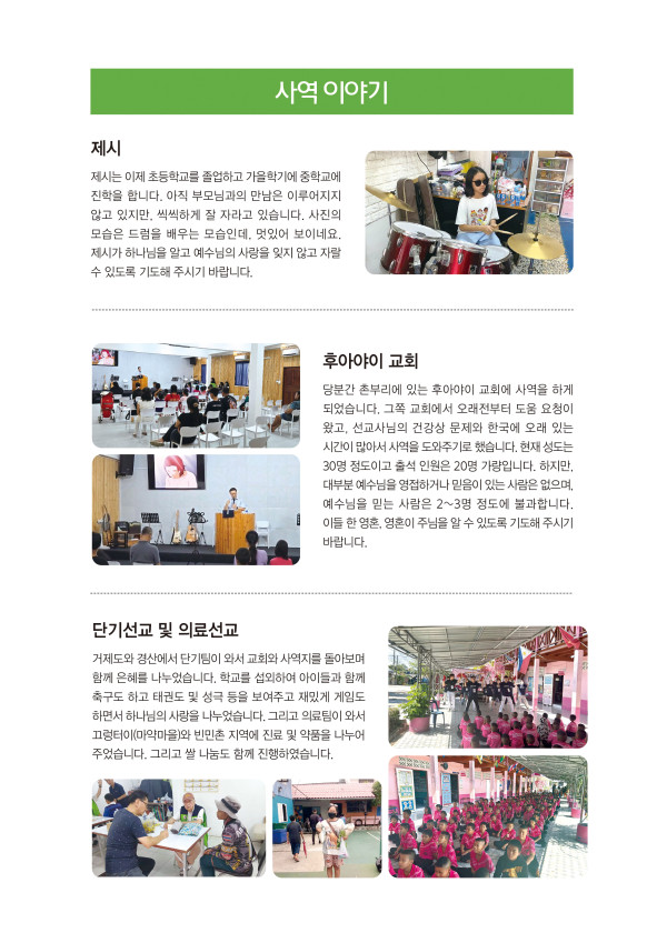 태국 장수원 황혜영 선교사님 소식 페이지 정보 작성자 최고관리자 댓글 0건 조회 45회 작성일 26-03-18 12:16 본문 2026년 3월 소식 목록 다음글 남아공 천준혁 박미정 선교사님 소식입니다 댓글목록 댓글목록 등록된 댓글이 없습니다.